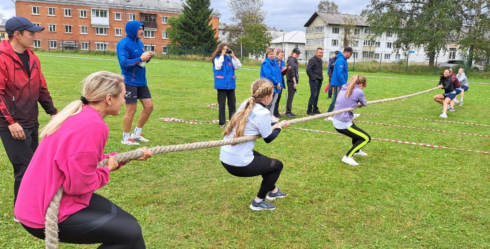 ⦁ Перетягивание каната среди девушек — сила и командный дух.
