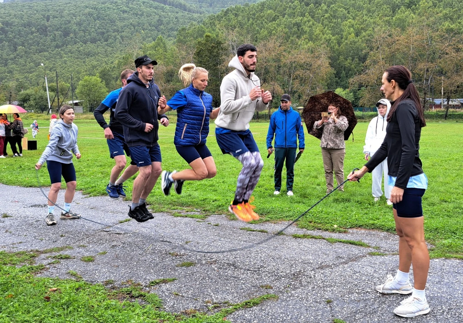 ⦁ Командные прыжки на скакалке — синхронность и координация.